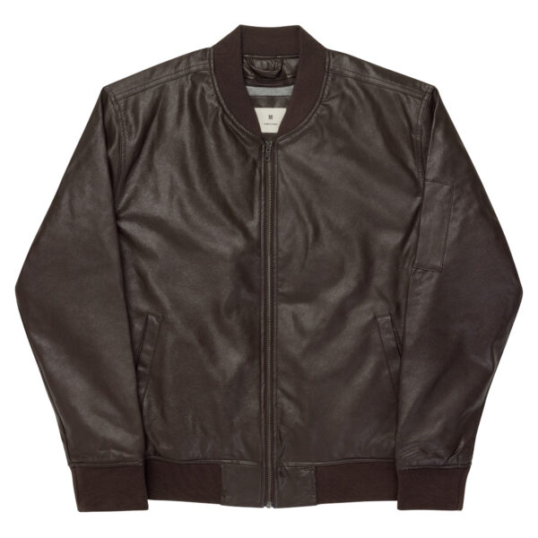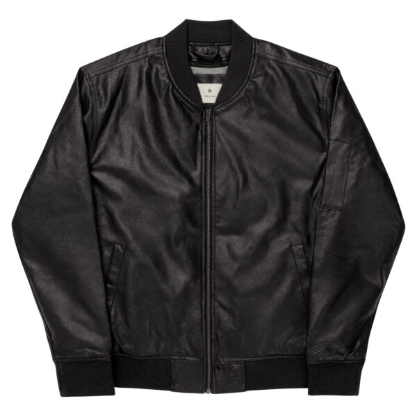 Trends come and go, but some pieces are here to stay. The Faux Leather Bomber Jacket is a classic staple that will complement casual, chic, or sporty outfits. The jacket is designed specifically for embroidery. We’ve added an extra layer of fabric hidden inside to make your designs more durable, smooth-looking, and resistant to tear.  . Outside: 100% polyurethane (PU) leather. Lining: 60% cotton, 40% polyester. Embroidery backing: 100% rayon . Fabric weight: 10. 6 oz/yd² (359 g/m²). Regular fit. Rib-knit banding at collar, cuffs, and hem. Side pockets. Utility pocket on the sleeve. Hidden inside access zipper behind the embroidery area. Blank product sourced from China. This product is made on demand. No minimums.