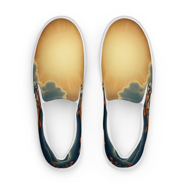 Every outfit needs a good pair of shoes to look complete. Create a modest, bright, or grunge-inspired design for these Slip-On Canvas Shoes—the shape and style make them suitable for almost every idea and activity. Equipped with removable soft insoles and rubber outsoles, it’s also easy to adjust them for comfort. Get these shoes for yourself or expand your catalog and give your customers the ideal shoe with your custom designs and branding. 100% polyester canvas upper side. Ethylene-vinyl acetate (EVA) rubber outsole. Your brand on the box, insole, and tongue of the shoe . Breathable lining, soft insole. Elastic side accents. Padded collar and tongue. 2 options: white or black soles. Printed, cut, and handmade. Blank product sourced from China. Disclaimers:. This product is available only in select countries. If you sell this item on your online store, make sure you let your customers know that they won’t be able to order this product outside of these countries. As of April 21, 2025, express shipping is no longer available for customers who previously had this option enabled. This change is due to increased carrier surcharges of up to $25–$30 per package. Please note that the branded shoebox is the main packaging box for the shoes. Dents and scratches can be expected. A strong glue smell is expected upon the product’s arrival. Allow the shoes to air out for a couple of days and the smell will disappear. Please note that our shoes are set to US sizes by default. Use our size guide to find the right size for other countries!. This product is made on demand. No minimums.